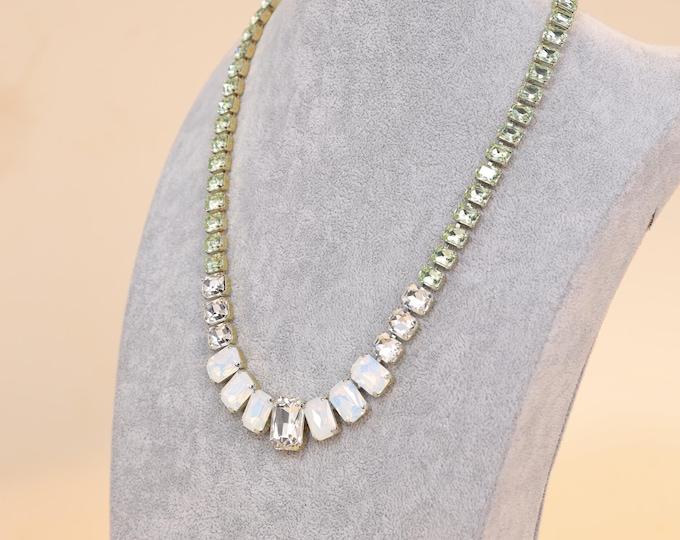 Boho Bridal Necklace: Light Green & White Protein Crystal Statement Jewelry
